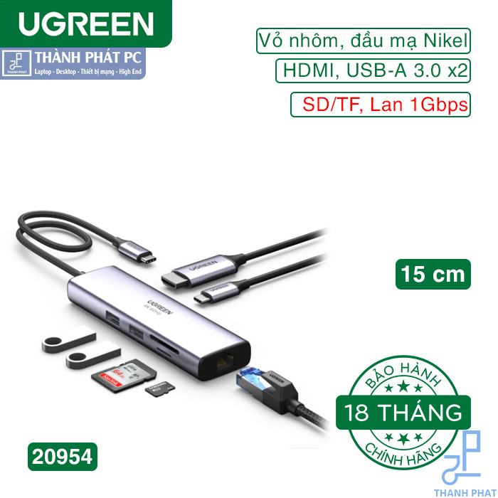 Hub Ugreen 20954 làm cho cuộc sống của bạn thêm màu sắc - phản chiếu hoặc mở rộng màn hình bằng cổng HDMI của bộ chuyển đổi USB C và truyền trực tiếp video 4K@60Hz UHD hoặc full HD 1080P tới HDTV.