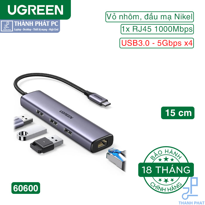 Hub USB Ugreen 60600 là bộ điều hợp Ethernet UGREEN USB C / Thunderbolt 3 được trang bị một cổng Gigabit Ethernet và 3 cổng USB 3.0. Vừa cung cấp cho thiết bị của bạn một mạng có dây ổn định, vừa có thể mở rộng thêm nhiều phụ kiện. Nó là người bạn đồng hành hoàn hảo cho MacBook Pro 14 inch / 16 inch 2021 (M1 Pro / M1 Max) của bạn.