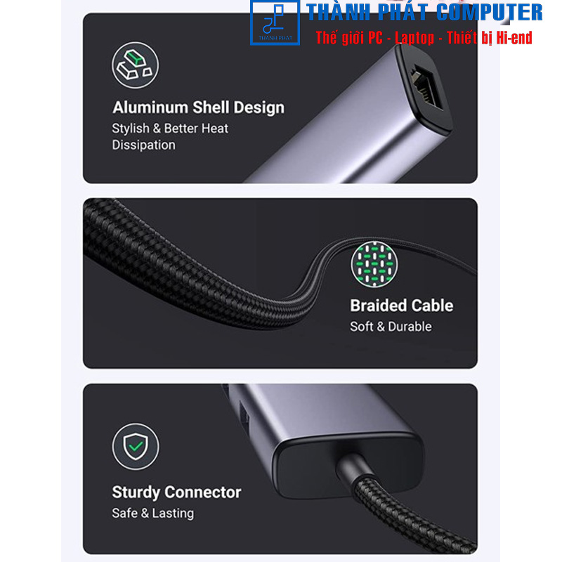 Bộ chuyển đổi Ugreen 60600 USB 3.1 sang RJ45 này sử dụng thiết kế vỏ nhôm mới, không chỉ đẹp và trang nhã mà còn chống bám vân tay, chống ăn mòn và tản nhiệt tốt hơn. Và thiết kế cáp bện siêu bền cũng giúp cải thiện đáng kể tuổi thọ sử dụng của sản phẩm.