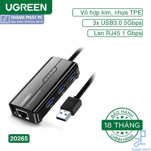 Bộ chia USB 3.0 tich hợp cổng Mạng Gigabit Ugreen 20265 Combo - 3,0 Gigabit 10/100 / 1000Mbps mạng Ethernet + 3 cổng USB 3.0 Hub có thể không chỉ có thêm một giao diện mạng cho máy tính của bạn thông qua USB, mà còn để kết nối máy tính của bạn với nhiều thiết bị, chẳng hạn như máy ảnh kỹ thuật số, quạt máy tính, điều khiển flash.
