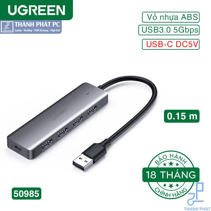 Bộ chia USB 3.0 4 cổng Ugreen 50985 giúp kết nối nhiều thiết bị ngoại vi tới máy tính của bạn thông qua cổng USB 3.0 duy nhất, hỗ trợ tốc độ truyền tải dữ liệu lên đến 5Gbps, Đảm bảo đường truyền tín hiệu vượt trội mà vẫn hoàn toàn ổn định.