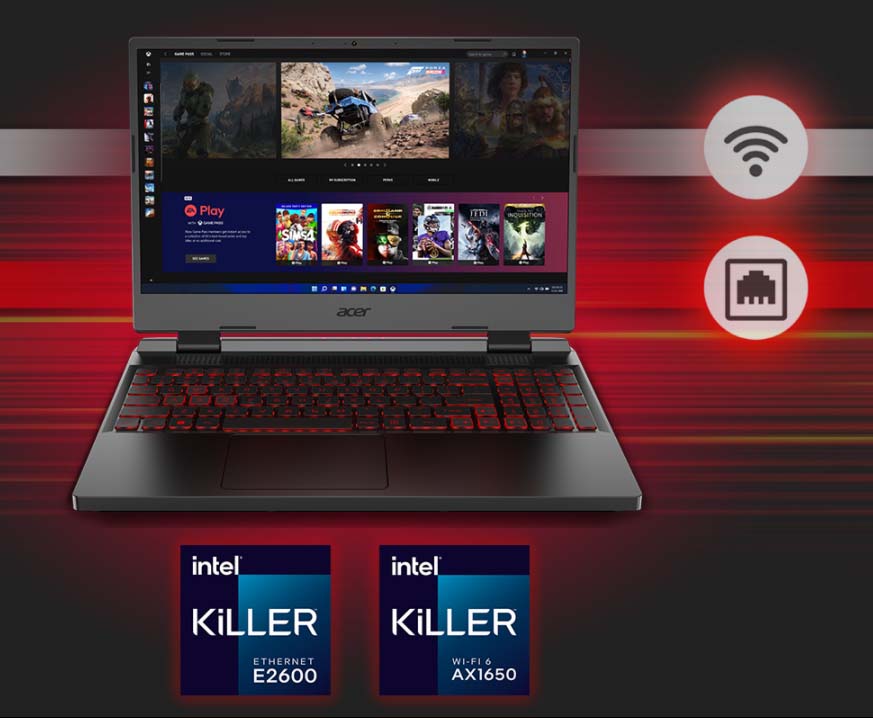 Acer Nitro 5 Tiger trang bị chuẩn Wi-Fi 6E mới cho tốc độ đáng kinh ngạc trong khi vẫn đảm bảo kết nối mượt mà ổn định ngay cả khi có nhiều người cùng sử dụng. Với băng thông cực cao và độ trễ thấp, bạn sẽ có được ưu thế trước mọi đối thủ. Cùng Killer Gaming Lan giúp tối ưu hóa luồng dữ liệu qua mạng, ngăn ngừa tình trạng lag/giật để bạn luôn có thể phát huy tối đa khả năng chơi game của bản thân