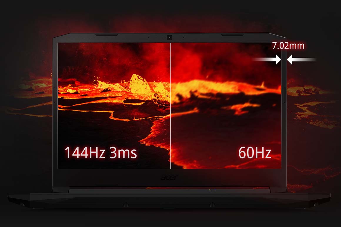 Trang bị màn hình IPS FHD trên Acer Nitro 5 bùng nổ lên đến 144Hz với khả năng phản hồi 3ms giúp cho việc trải nghiệm hình ảnh một cách liền mạch, không bị rách với độ mờ tối thiểu nhất.