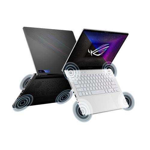 Hệ thống tản nhiệt ROG Zephyrus G14 GA402NJ thiết kế buồng hơi lan tỏa nhiệt trên toàn bộ bề mặt của chúng, tạo ra một diện tích rộng hơn để tản nhiệt nhanh chóng trong không gian nhỏ. Giảm nhiệt độ của các bộ phận nguồn này giúp cải thiện độ ổn định và độ tin cậy lâu dài.