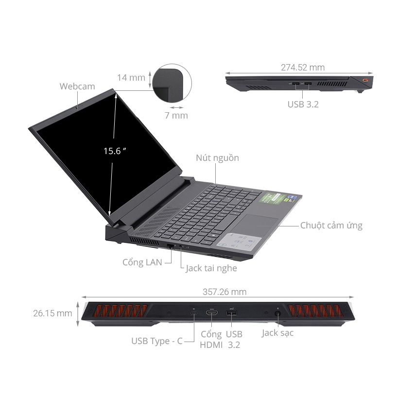 Cống kết nối của Dell Gaming G15 cũng được trang bị đầy đủ với: