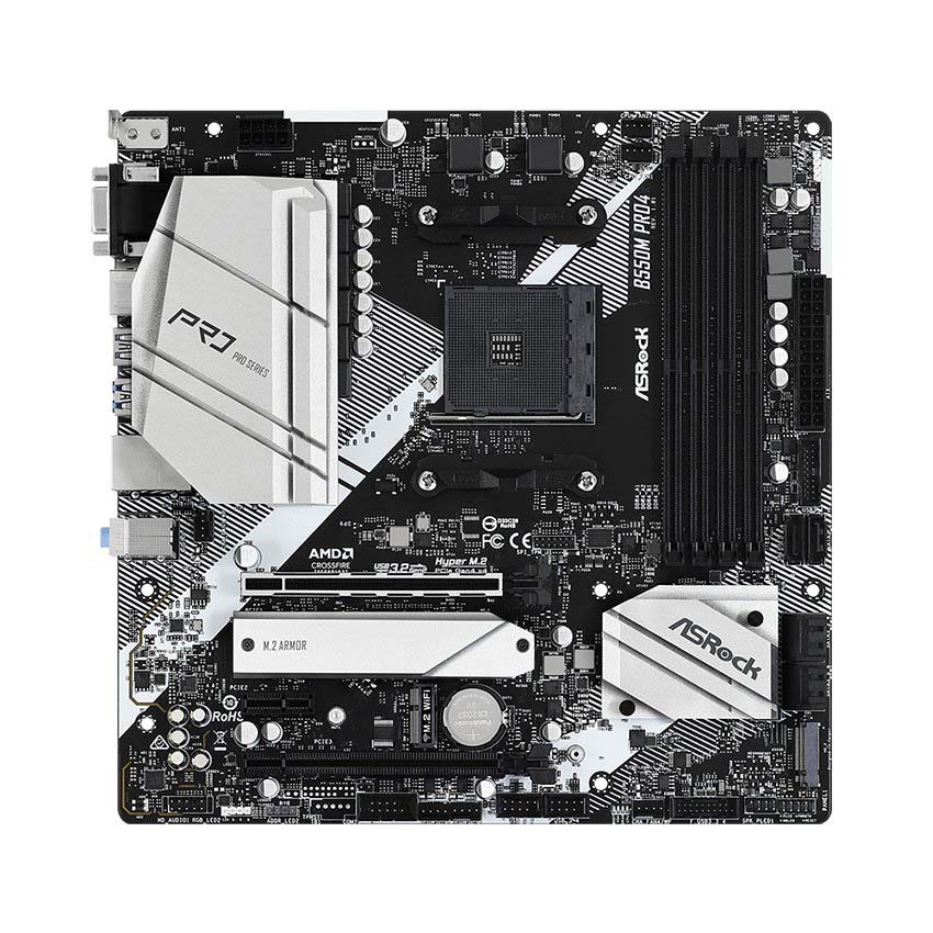 Mainboard ASROCK B550M PRO4 là bo mạch chủ sử dụng chipset B550 của AMD, hỗ trợ nền tảng socket AM4 có thể chạy được với các CPU Ryzen 3000 Series (Trừ R3 3200g và R5 3400g) và Ryzen 4000 Series.