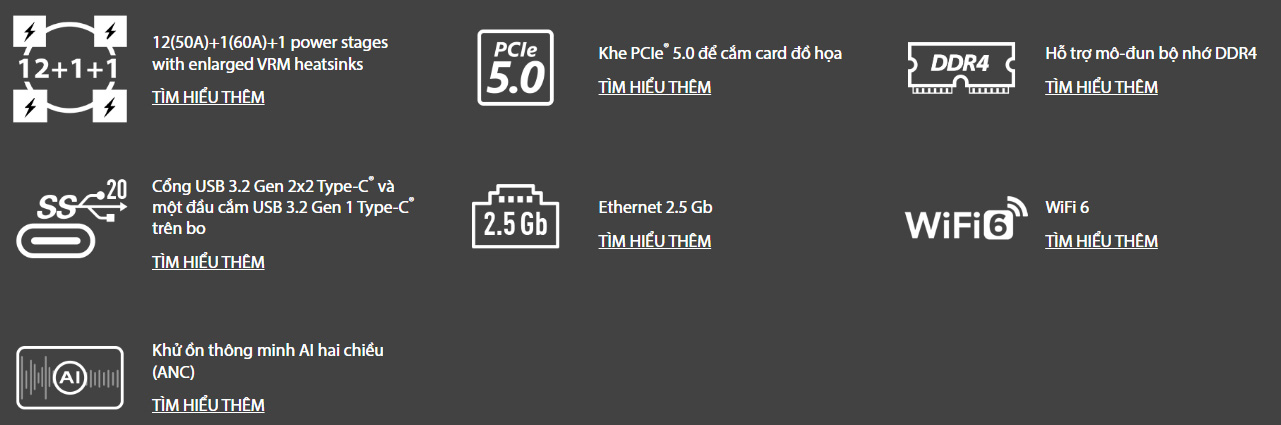- Mô-đun điều chỉnh điện áp Digi+ tích hợp (VRM): là một trong những mô-đun tốt nhất trong ngành, được tối ưu hóa để cung cấp năng lượng siêu mượt và siêu sạch cho CPU mọi lúc.