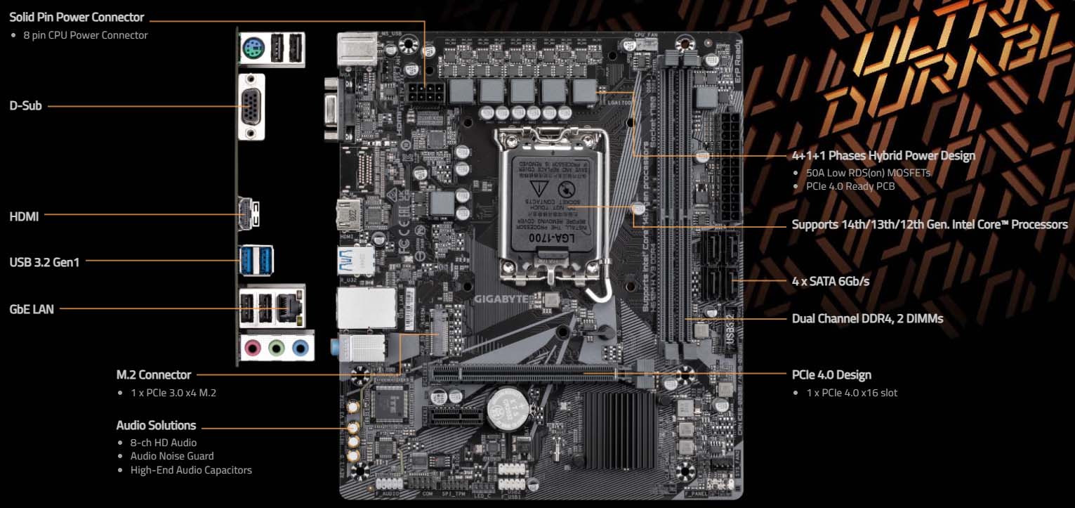 Socket LGA 1700: Hỗ trợ các dòng CPU Intel thế hệ 12, 13 và 14, mang đến hiệu năng mạnh mẽ cho máy tính của bạn.