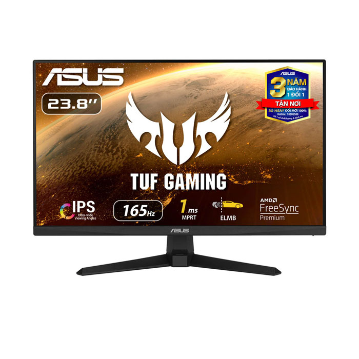 Màn hình Asus TUF GAMING VG249Q1A rộng 23,8 inch, sử dụng tấm nền IPS độ phân giải Full HD (1920x1080) với tốc độ làm mới 165Hz cực nhanh. TUF VG249Q1A được thiết kế dành cho các game thủ chuyên nghiệp và những người chơi muốn hòa mình vào các trò chơi thực sự. Không chỉ vậy, công nghệ ELMB độc quyền cho phép phản hồi trong vòng 1ms MPRT và sự kết hợp của công nghệ đồng bộ hóa thích ứng (FreeSync Premium) sẽ mang đến cho người dùng màn hình mượt mà và trải nghiệm chơi game tuyệt vời.