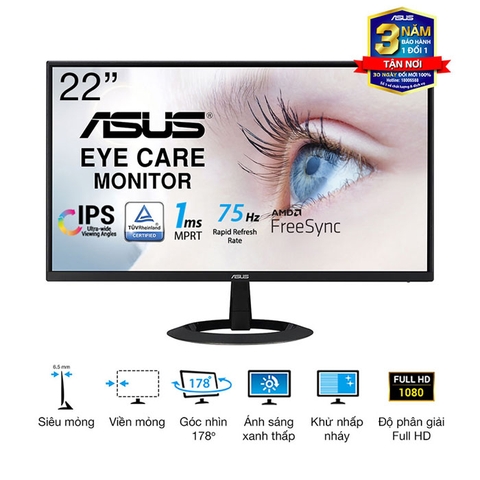 Asus VZ22EHE là màn hình 22 inch, góp mặt vào dải màn văn phòng của hãng. Được trang bị công nghệ Adaptive-Sync giúp loại bỏ hiện tượng xé hình và giật hình khi chơi game, mang lại trải nghiệm liền mạch và mượt mà. Nó được thiết kế để bảo vệ mắt người dùng và có công nghệ Low Blue Light và Flicker-Free giúp giảm căng thẳng và mệt mỏi cho mắt, ngay cả trong nhiều giờ sử dụng.
