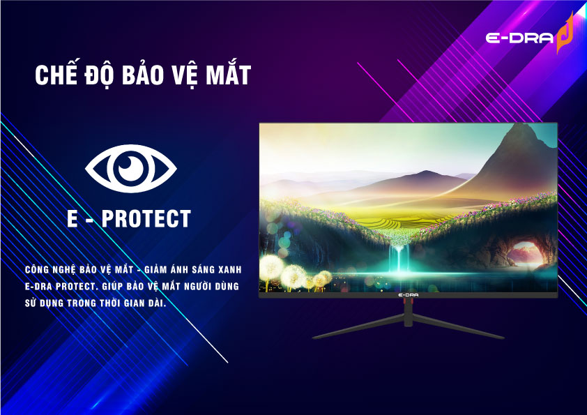 Công nghệ bảo vệ mắt - Giảm ánh sáng xanh E-Dra Protect giúp bảo vệ mắt người dùng khỏi những tác động tiêu cực từ màn hình khi sử dụng thời gian dài.