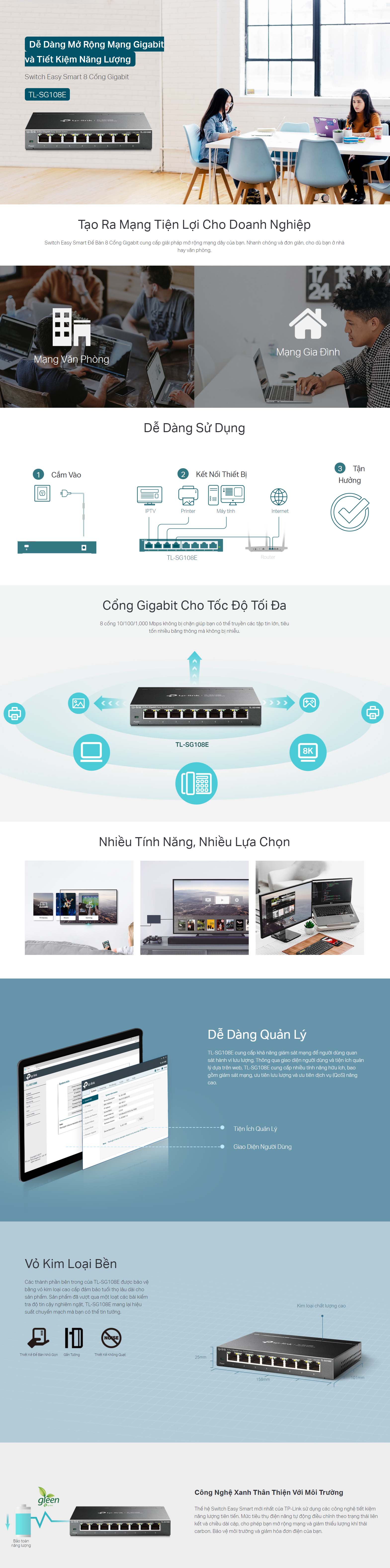 | Sản phẩm bao gồm | TL-SG108E Bộ chuyển đổi nguồn Hướng dẫn cài đặt Chân đế cao su |