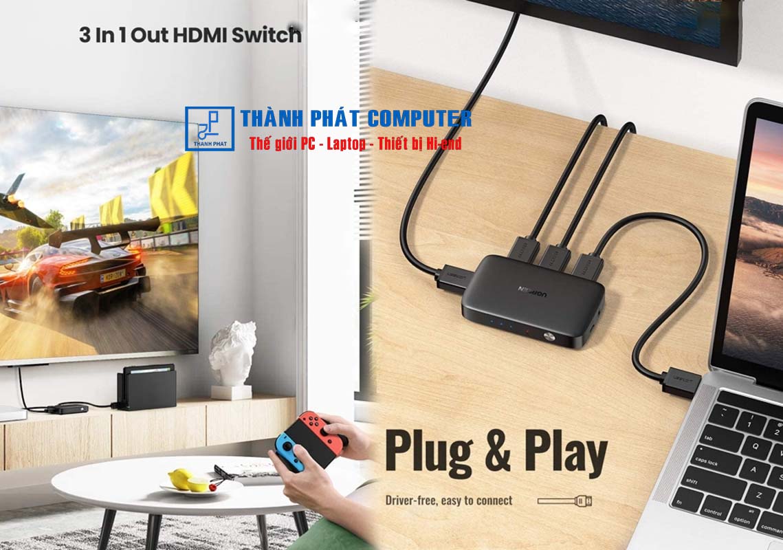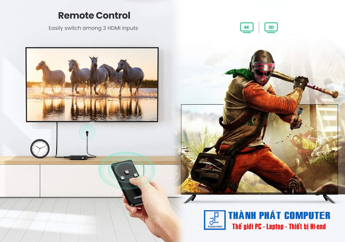 Công tắc HDMI 3 trong 1 ra Ugreen 80125 là bộ chuyển HDMI 3 trong 1 ra UGREEN dễ dàng truyền video và âm thanh từ 3 thiết bị HDMI sang 1 màn hình HDMI, giải phóng bạn khỏi việc cắm và rút cáp HDMI, dễ dàng tận hưởng thời gian làm việc và thời gian giải trí thông qua chuyển đổi giữa 3 thiết bị với một nút.
