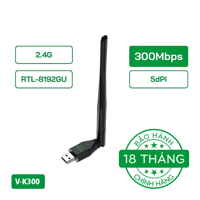 USB thu sóng WiFi V-K300 là lựa chọn hoàn hảo để nâng cao kết nối không dây cho máy tính của bạn, mang lại trải nghiệm mạng nhanh chóng và ổn định.